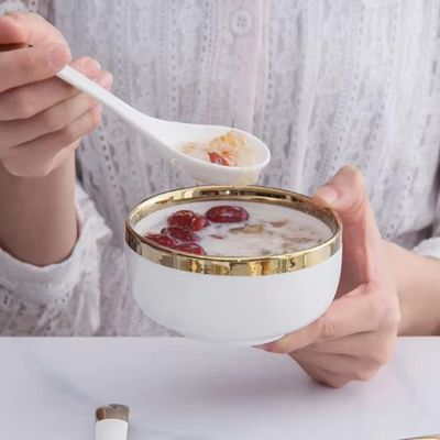 Product Name | Simple style dinnerware set gold rim soup bowls ceramic white porcelain rice bowls |