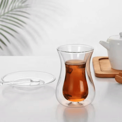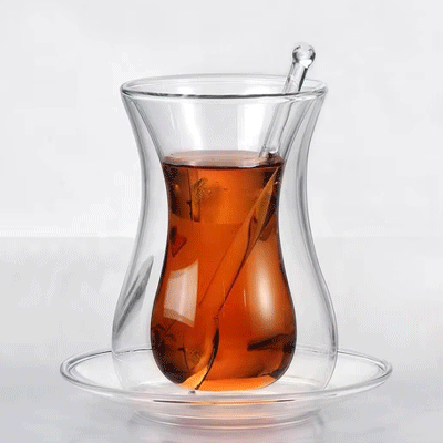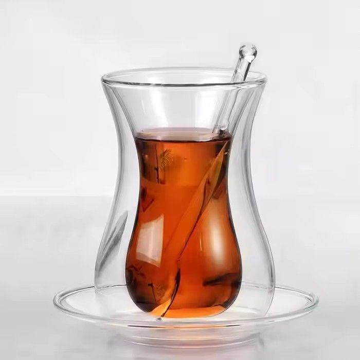 | SPECS | Handmade insulated turkey double wall glass coffee cup with saucer and spoon |
