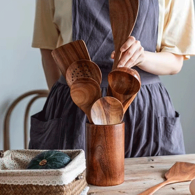 Premium Kitchen Utensils: The wooden cooking utensil set is made of wood to ensure long-lasting use.